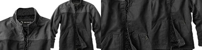 12 oz., 100% cotton Boulder Cloth™ canvas ; Textured thermal lining for extra warmth ; Inside cell phone and patch pockets with snap closure ; Drop tail with canvas facing to secure the lining; Articulated elbows and three-piece hood ;