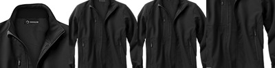 90% polyester,10% spandex face bonded with 100% polyester microfleece interior; Heathers: 100% polyester; Wind and water-resistant; Zippered chest and hand pockets; Adjustable cuffs; Auto-lock zipper with easy-grab zipper pull; Media port; Interior Cell Phone Pocket w/ Hook & Loop Closure 8"L x 6"W;