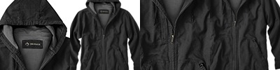 - Three-piece hood; Heavy duty metal zipper featuring a DRI DUCK puller