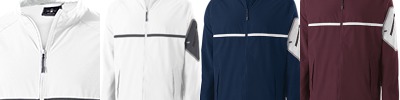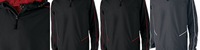 100% micron™ polyester; Micromesh lined nylon body & hood; Water-resistant and wind-resistant; Woven label; Adjustable mesh-lined hood with eyelets and concealed cord locks; Back vent with adjustable closure for full decoration access; Front zippered pockets; Half-elastic cuffs; Open bottom with adjustable elastic hidden drawcord; Drop tail hem;