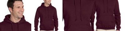 8.5 oz. 60% cotton, 40% polyester fleece; Triple-needle contrast accent stitching; Contrast jersey hood lining and drawcord; Raglan sleeves; Front pouch pocket;