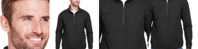 7.5 oz. 55% cotton, 39% polyester, 6% rayon; Contrast half-zip placket with metal zipper; Open-bottom with extended back length and contrast stitching;