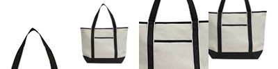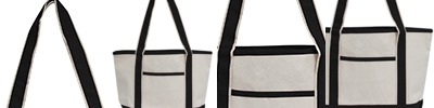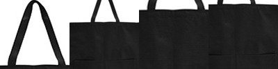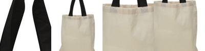 12 oz cotton canvas; 15" x 16"; 20" self-fabric handles; Non-branded label/tag;