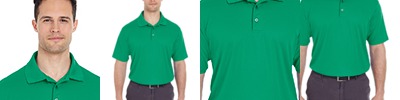 4.8 oz., 100% micro-textured polyester knit; Anti-bacterial; Moisture-wicking; Relaxed fit; Flat-knit collar; 3-button placket;
